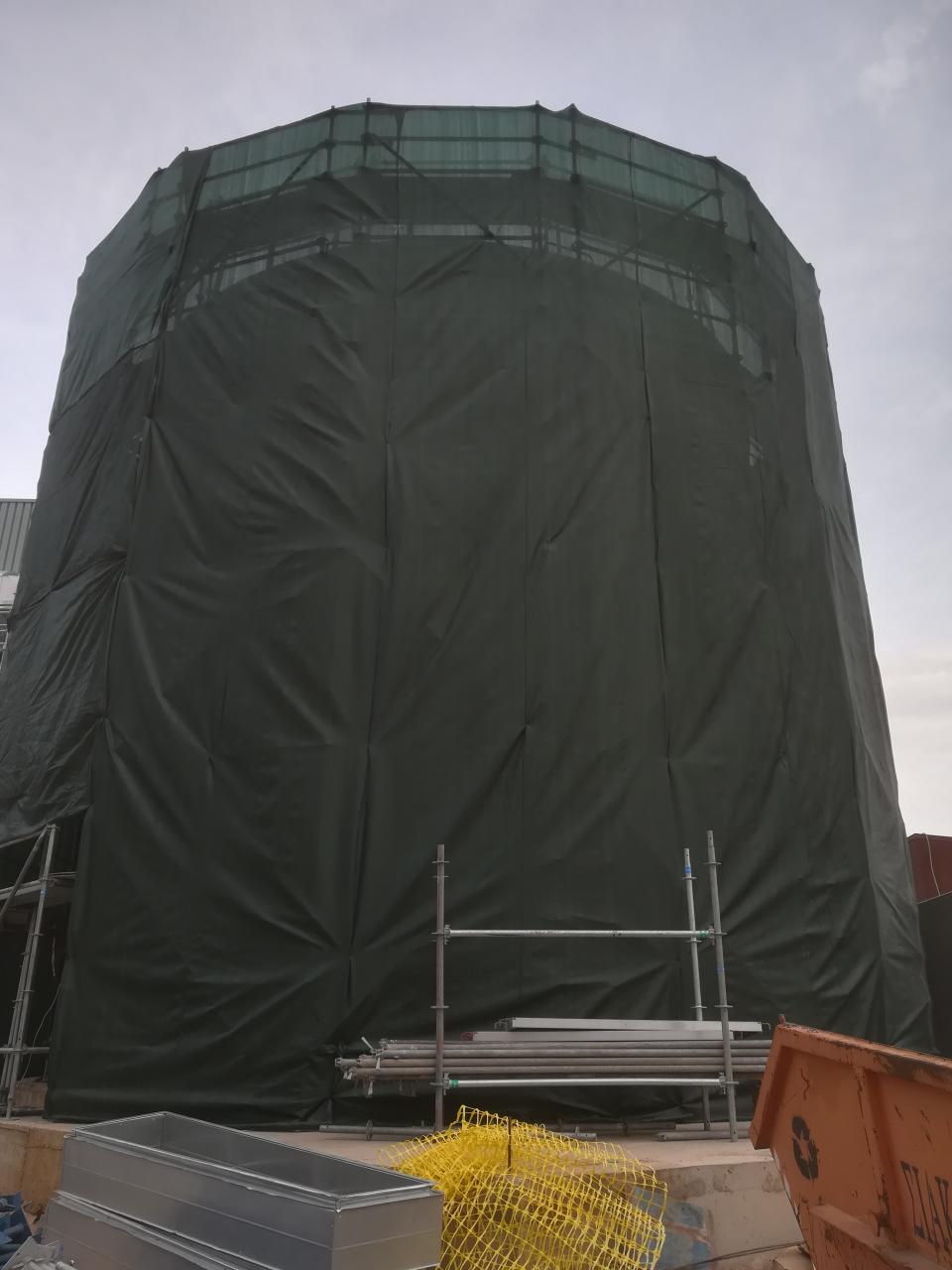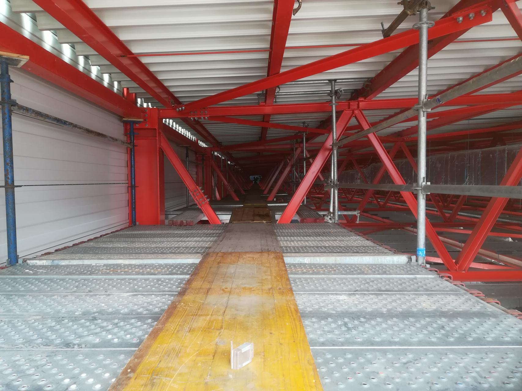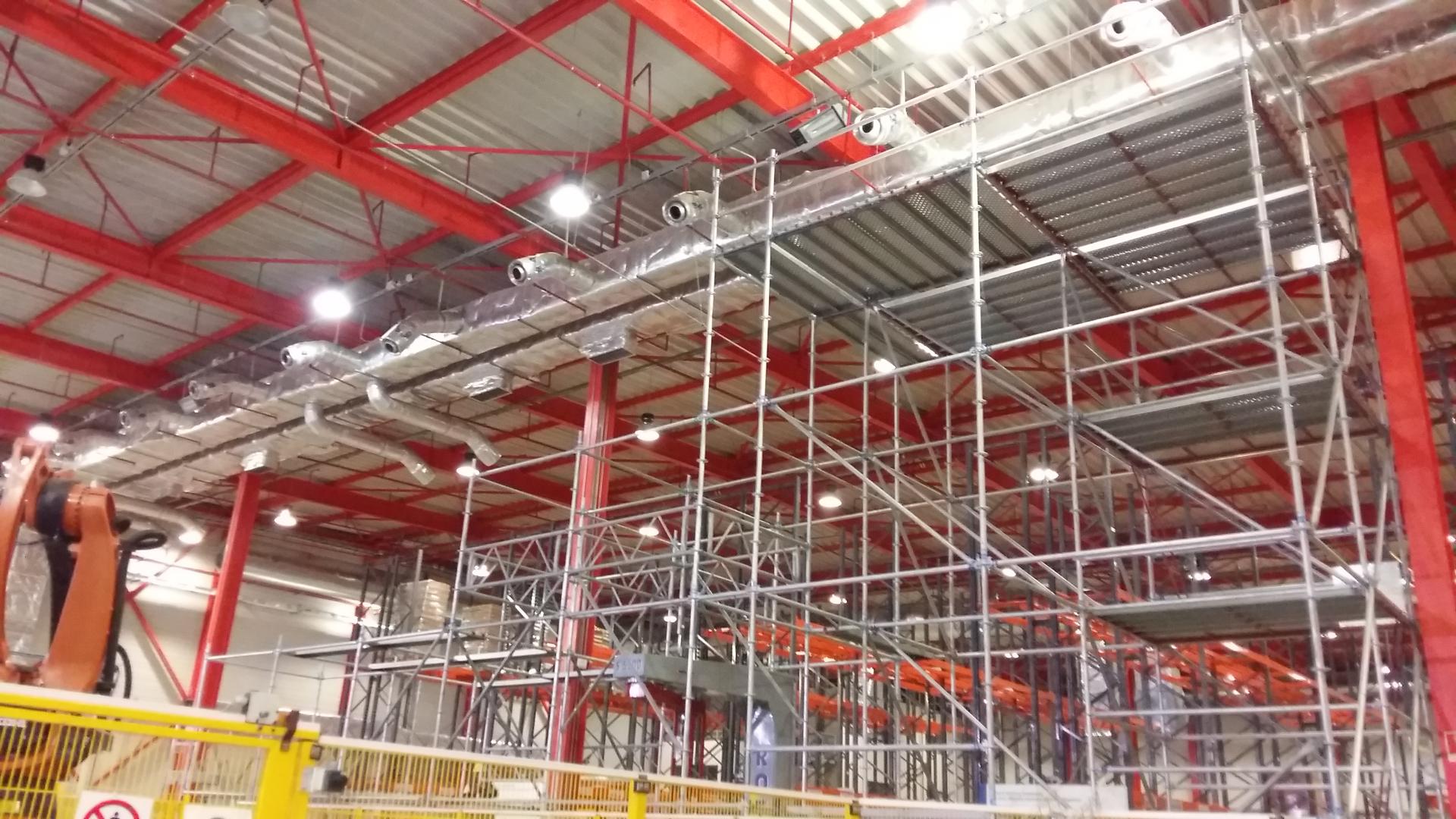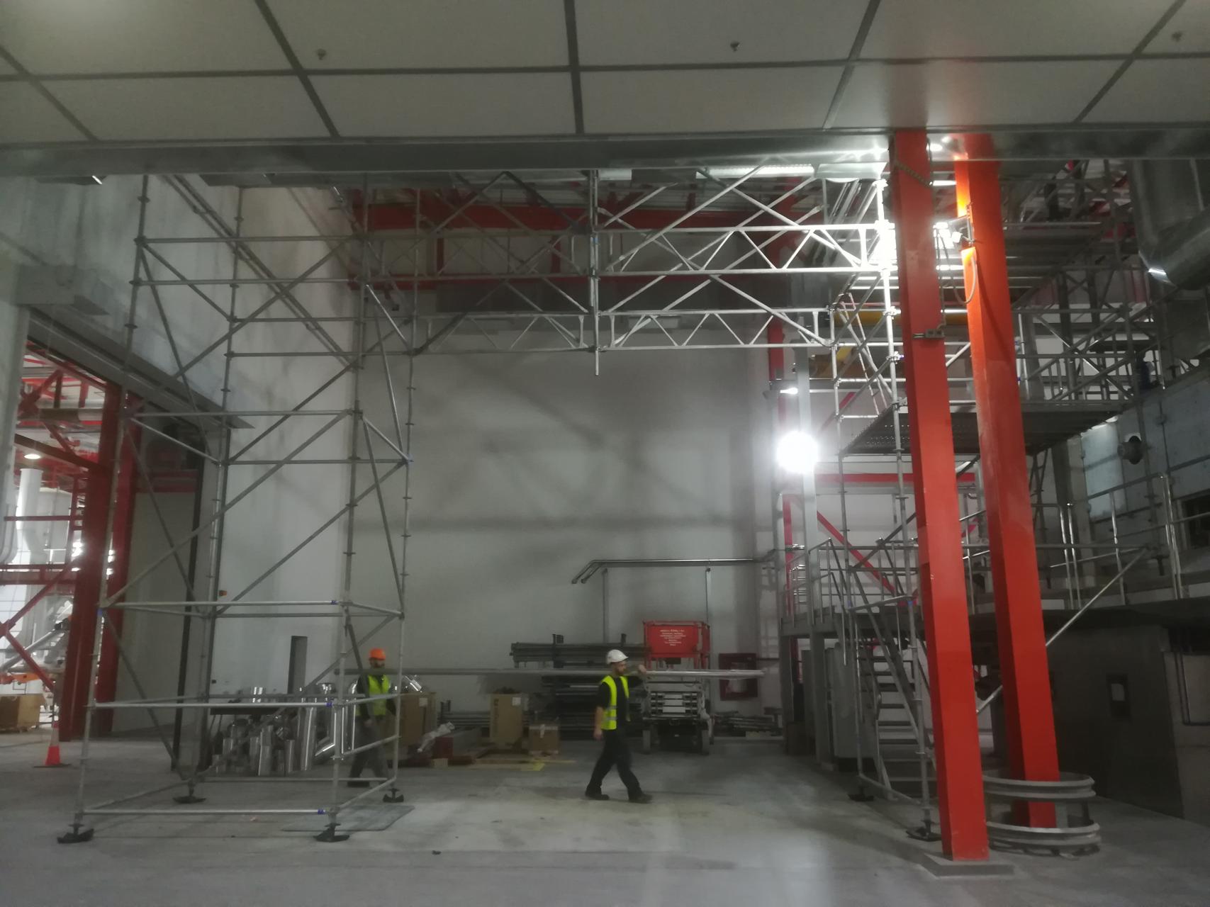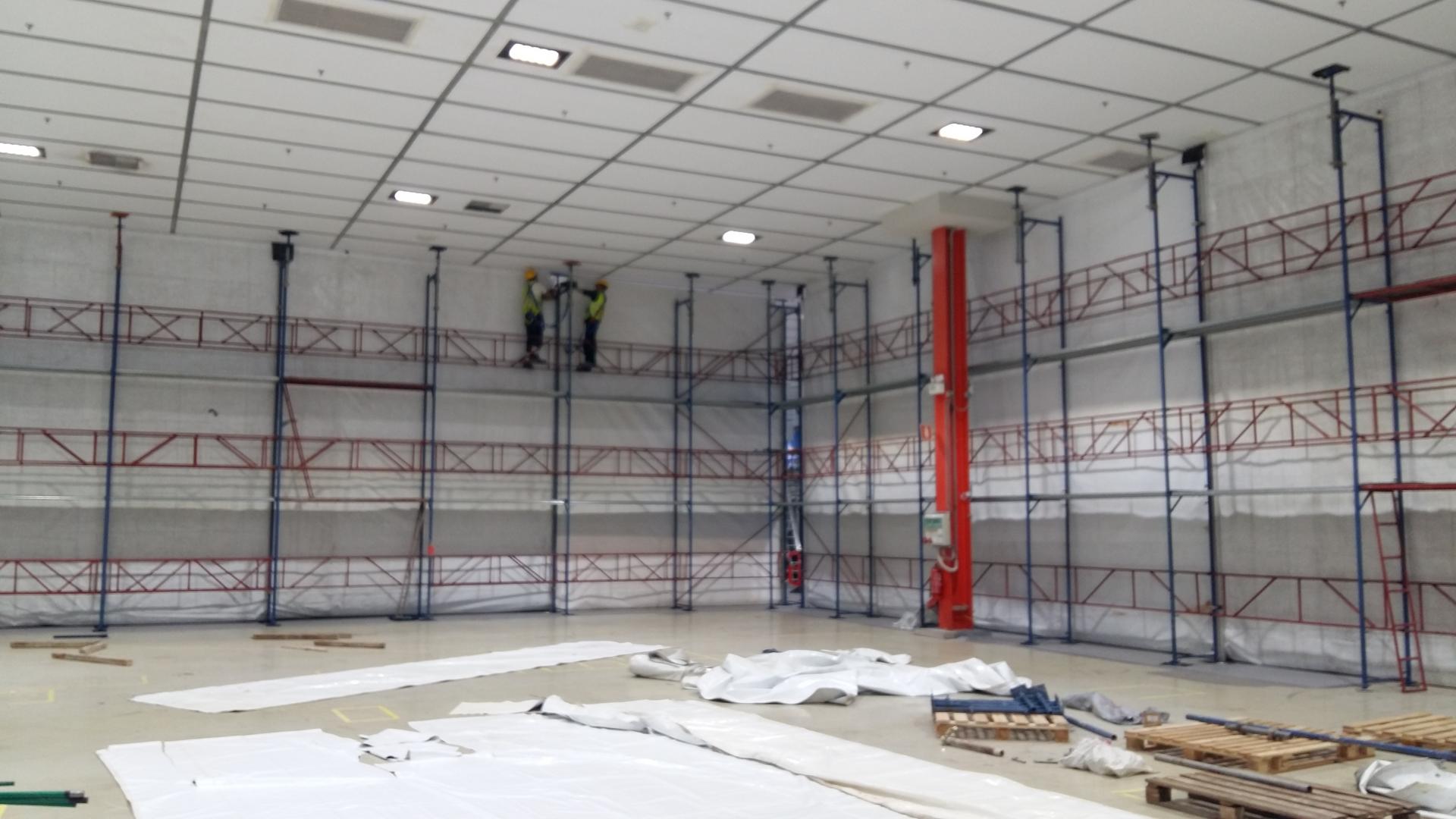 Τοποθέτηση σκαλωσιάς με ροζέτα και πλαισιακής σκαλωσιάς εντός και εκτός εργοστασίου Παπαστράτου. Απομόνωση με χρήση P.V.C τμήματος παραγωγής για την εκτέλεση τεχνικών εργασιών, χωρίς τη διατάραξη της παραγωγικής διαδικασίας