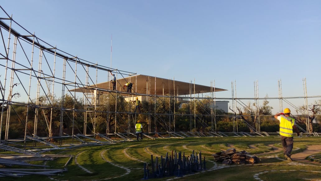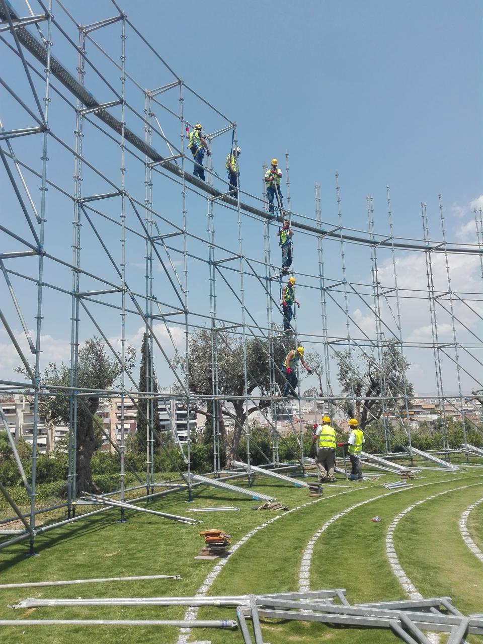 Κατασκευή περιμετρικής σκαλωσιάς ροζέτας στο "Λαβύρινθο" του Κ.Π.Ι.Σ.Ν. για τη διοργάνωση των "June Events" (2017)