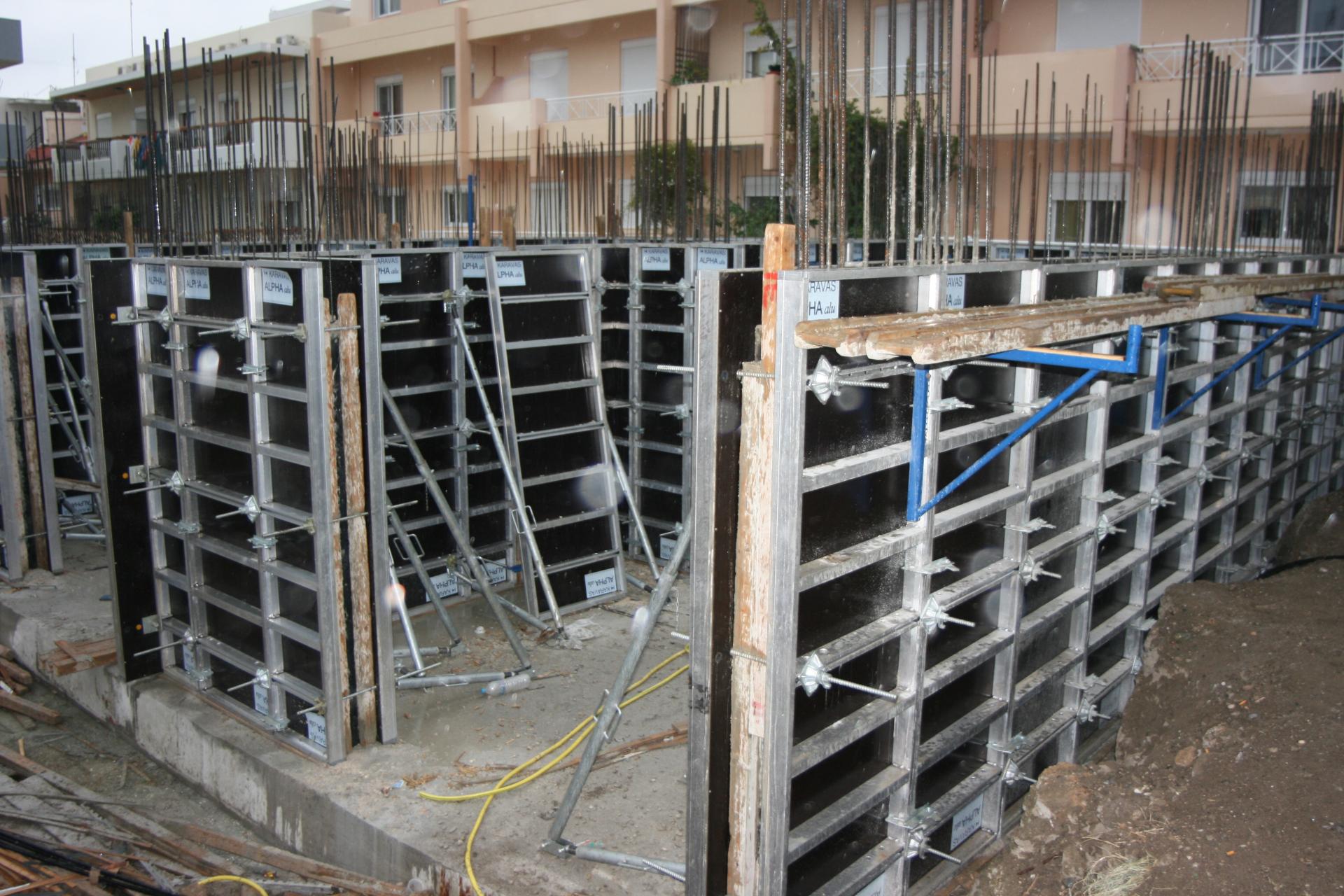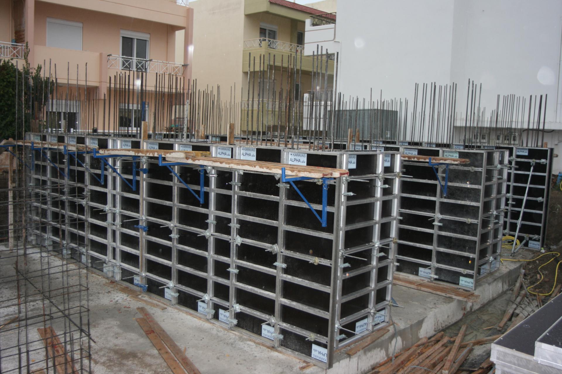 The ALPHA Alu panels can stand 60Kn/m2 concrete hydrostatic pressure up to concreting height 2,70m. In extensions higher than 2,70m the fresh concrete pressure should not exceed 40Kn/m2 all over the surface of the framework.