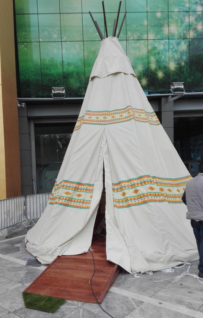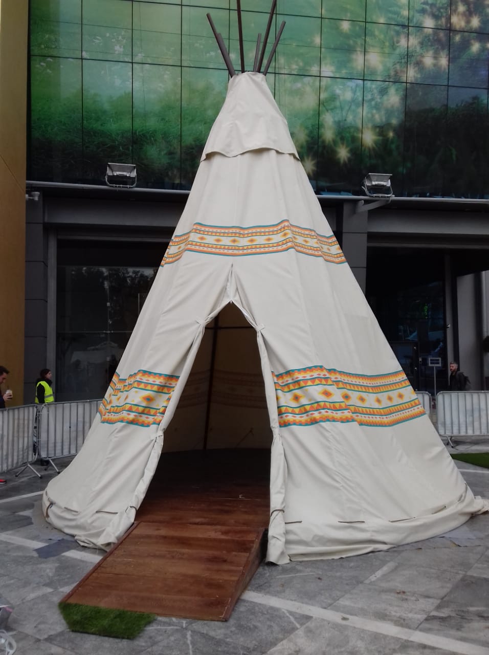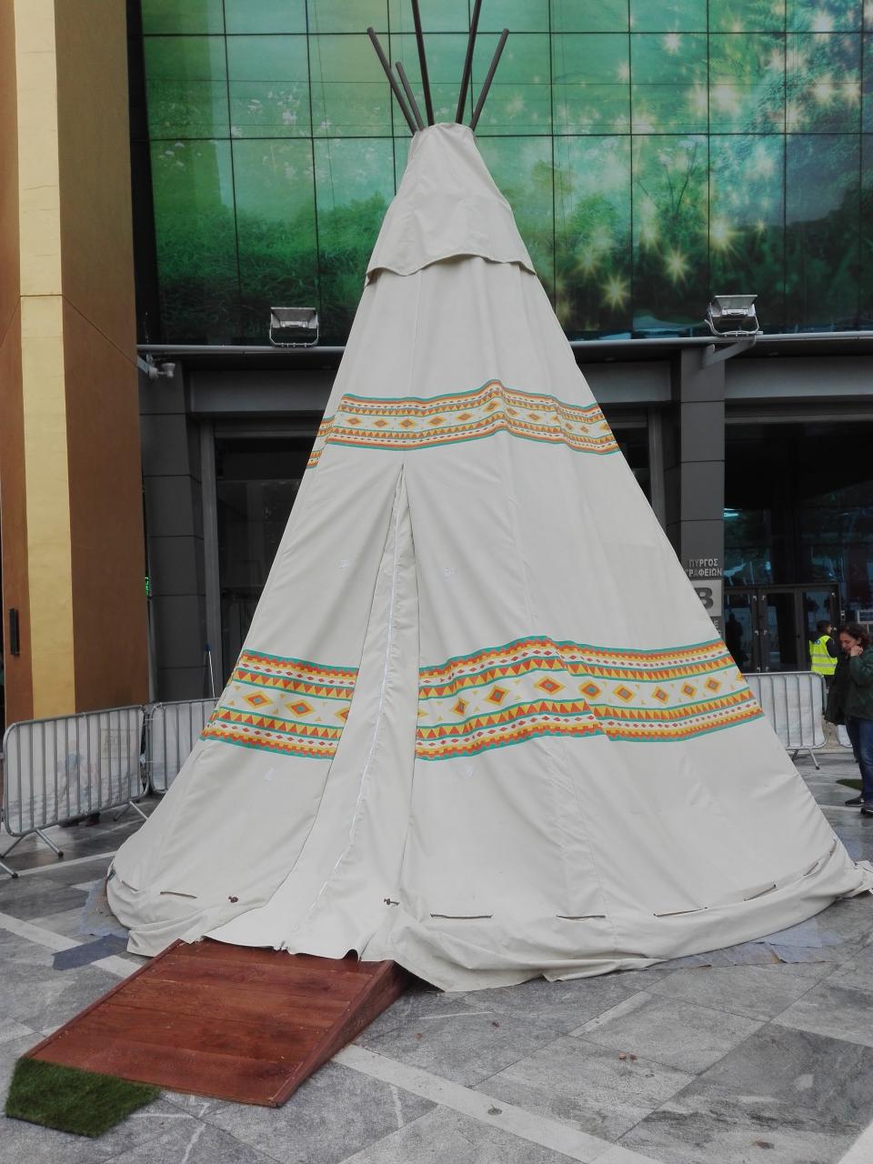 Two teeppes with metallic frame and wooden deck have been constructed for the needs of "Spring in Goldenland" event, at Golden Hall, in April 2019